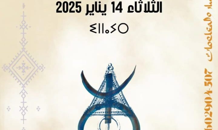 بمناسبة الاحتفال برأس السنة الأمازيغية 2975 تعتزم جمعية خميسة للتنمية والتضامن تنظيم حفل أمازيغي متنوع يوم 14 يناير 2025 بقاعة با حنيني بالرباط ابتداء من الساعة 18:00.