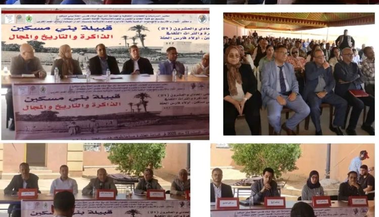امتدادا لمسعى ثقافي يرومُ مساءلة الذاكرة المحلية للبادية المغربية، واستعادة نبض أمكنتها وتراثها وأعلامها، عبرَ استنطاق ذاكرتها بما تختزنه من رموز لم تكشفْ، ومرويات لم تكتبْ، وتجارب إنسانية وثقافية تعيدُ ربط الإنسان بجذوره وهويته، عقد مختبر السرديات والخطابات الثقافية بجامعة الحسن الثاني بالدار البيضاء يوم السابع عشر من ماي، بجماعة أولاد فارس الحلّة، دائرة البروج الملتقى الحادي والعشرون للذاكرة والتراث الثقافي، دورة بني مسكين بالشاوية العليا، بعنوان: “الذاكرة والتاريخ والمجال في قبيلة بني مسكين”، بشراكة مع الجماعة الترابية أولاد فارس الحلّة دائرة البروج ببني مسكين، وبتنسيق مع كلية اللغات والفنون والعلوم الإنسانية، بجامعة الحسن الأول بسطات، ومختبر المجال والتاريخ والإنسانيات الرقمية بكلية الآداب والعلوم الإنسانية بنمسيك بالدار البيضاء، ونادي القلم المغربي.
