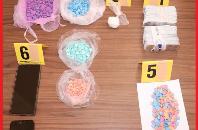 وتم توقيف المشتبه فيه الأول عند نقطة المراقبة المرورية بمدخل المدينة، مباشرة بعد وصوله على متن حافلة قادمة من شمال المملكة، حيث أسفرت عملية التفتيش عن العثور بحوزته على 2040 قرصاً مخدراً، منها 1198 قرصاً من نوع ريفوتريل و842 قرصاً من نوع إكستازي، إضافة إلى 15 غراماً من مخدر الكوكايين.