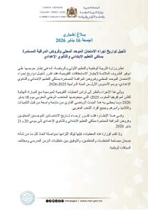 وإذ تخبر الوزارة بهذه المستجدات، فإنها تؤكد حرصها على مواصلة اتخاذ كل ما من شأنه ضمان مصلحة المتعلمات والمتعلمين، وتحقيق التوفيق بين متطلبات الزمن المدرسي ومختلف الاستحقاقات الوطنية.
