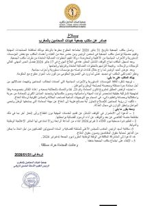 ويهيب مكتب الجمعية بكافة الزميلات والزملاء المشاركة المكثفة في الوقفة الوطنية المقررة يوم الجمعة 6 فبراير 2026، مؤكّدًا الإبقاء على اجتماع المكتب في حالة انعقاد دائم لمواكبة تطورات هذا الملف.