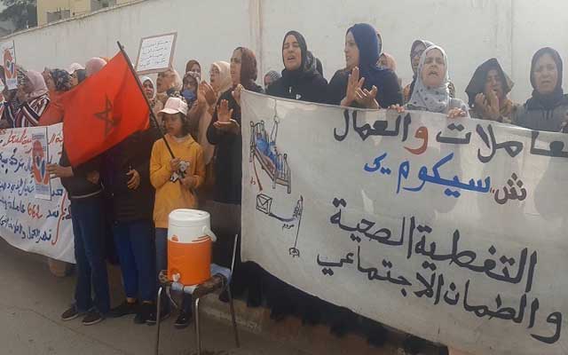 ويواصل عمال وعاملات شركة “سيكوم سيكوميك” احتجاجاتهم منذ أكثر من خمس سنوات، للمطالبة بتسوية وضعيتهم المهنية والاجتماعية، وصرف المستحقات المرتبطة بالتغطية الاجتماعية والصحية.