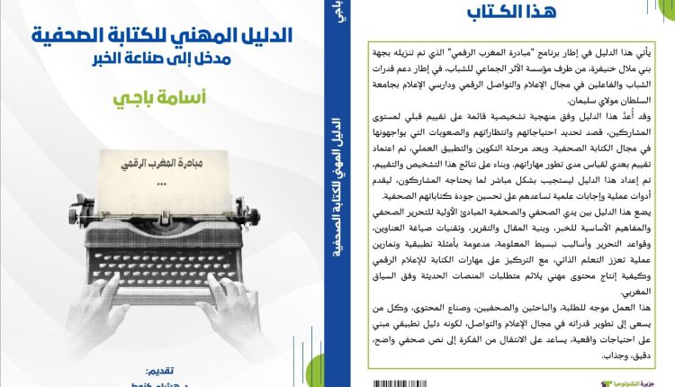 في سياق التحولات المتسارعة التي يشهدها الحقل الإعلامي بفعل الثورة الرقمية، صدر حديثاً كتاب الدليل المهني لكتابة الصحفية: مدخل إلى صناعة الخبر، من تأليف الصحفي والباحث أسامة باجي، في خطوة تروم تأطير الممارسة الصحفية ضمن رؤية علمية وتطبيقية تستجيب لمتطلبات المرحلة.